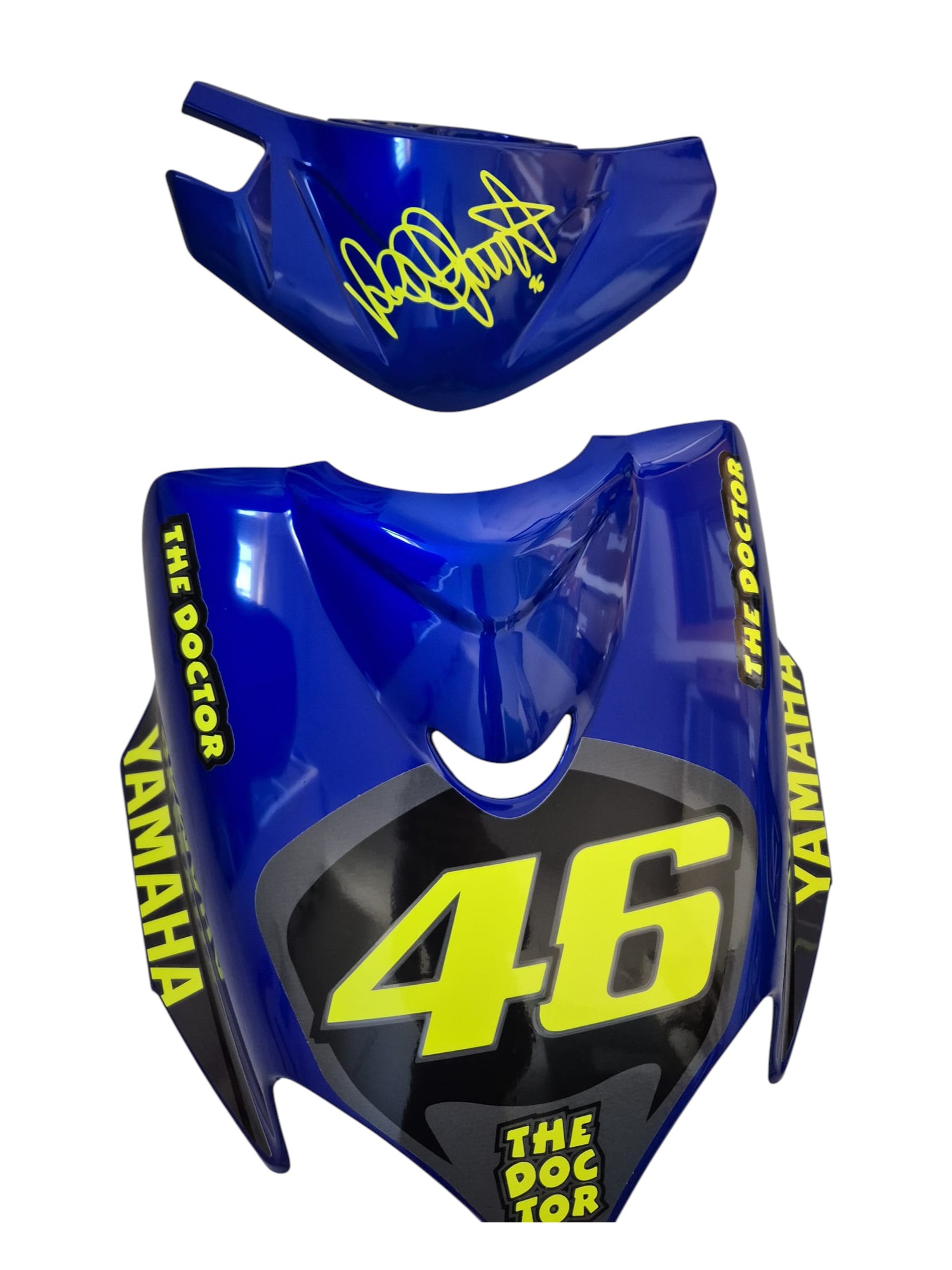 Carenado Yamaha Jog R/RR azul eléctrico + adhesivos VR 46. Este kit de plásticos o carcasas es válido para Yamaha Jog R y Jog RR. Está compuesto por 9 piezas: cabezón, tapa frontal, h, guardabarros delantero, bajos, tapas traseras y alerón, en color azul eléctrico + adhesivos Valentino Rossi. Si necesitas grapas y tornillos, añádelos a tu pedido.