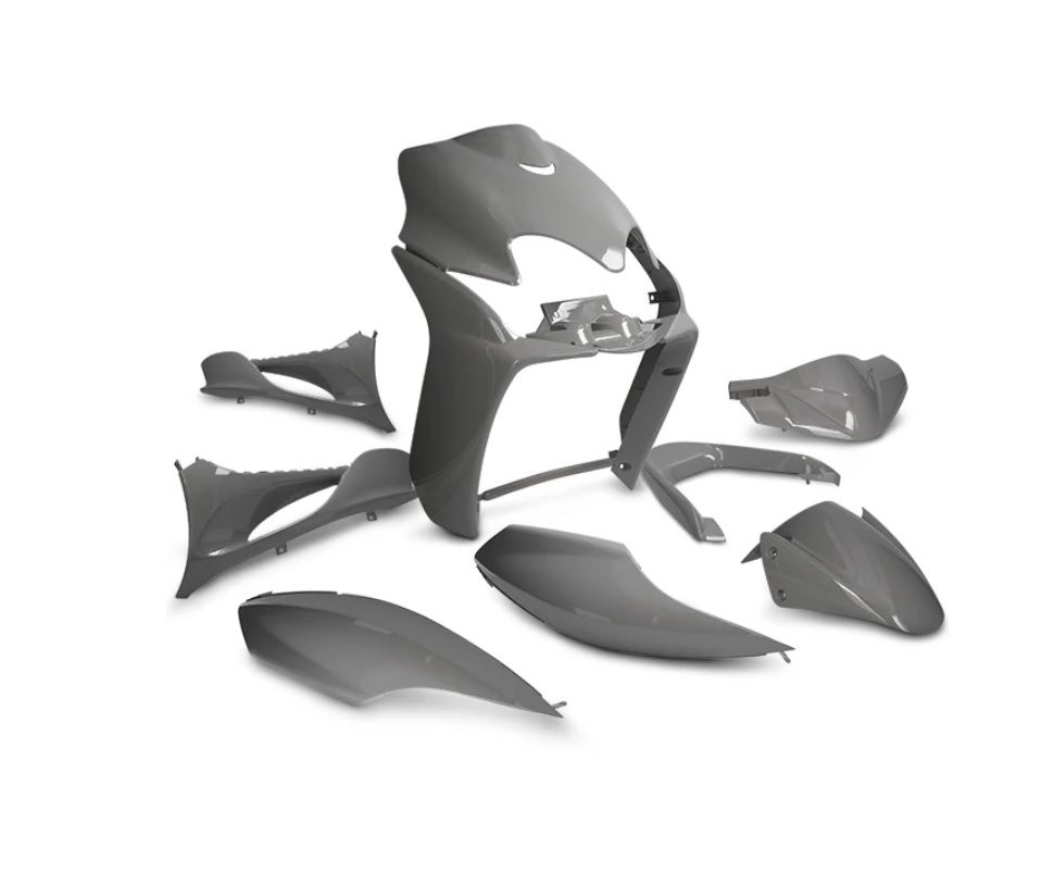 Carenado Yamaha Jog R/RR gris nardo. Este kit está compuesto por 9 piezas.