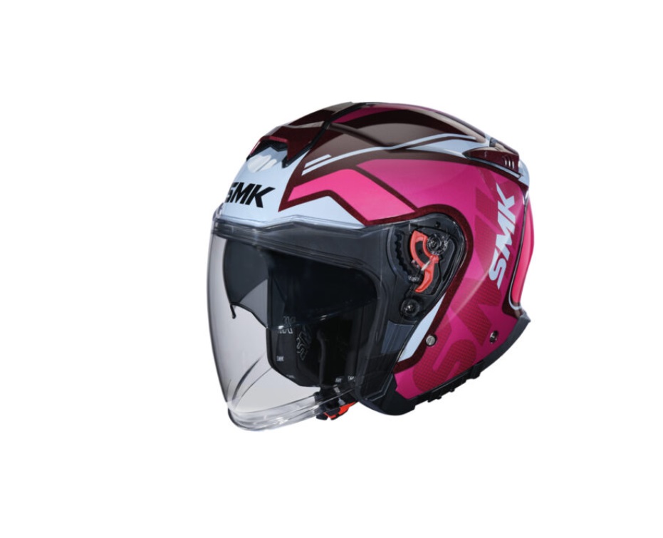 Casco SMK GTJ Tourer decorado brillo rosa. El SMK GTJ es un casco jet diseñado para los motociclistas que valoran la flexibilidad y el confort, ideal para viajes largos y uso diario. Este casco combina un diseño contemporáneo con características avanzadas, ofreciendo seguridad y conveniencia en un solo paquete.