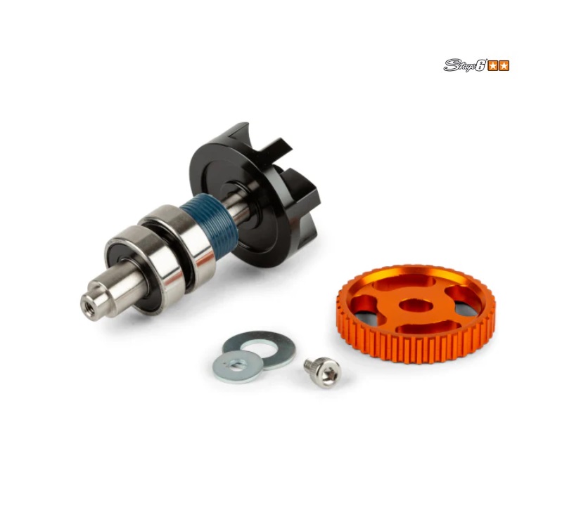 Kit reparación bomba agua Stage 6 Piaggio MK2. Con esta bomba de agua aumentarás con eficacia la refrigeración de tu moto, contiene una rueda dentada de aluminio mecanizada en CNC que reduce el peso, consiguiendo una mejora en la entrega de potencia. El kit incluye, la rueda dentada, 2 rodamientos y un retén de aceite. Esta bomba de agua es válida para motores Piaggio, montada en motos como Piaggio Zip SP, Gilera, NRG, Typhoon, entre otras. Es ideal para competición o preparados.