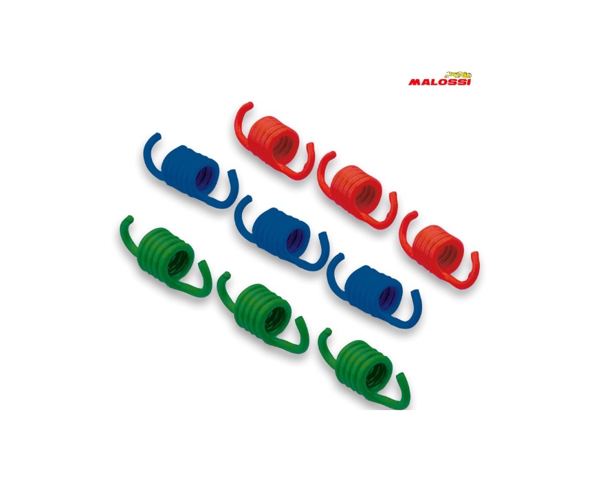 Muelles embrague Malossi Minarelli Horizontal D.107mm. Este juego de muelles de embrague del fabricante Malossi es válido para motores Minarelli Horizontal, montados en motos como Yamaha Jog R/RR, Aerox, Beta ARK, Aprilia Sonic, entre otras. Este juego incluye 9 muelles de 3 durezas diferentes: verde 2500-4500 rpm, azul 4500-6000 rpm y rojo 5500-7000 rpm. Estos muelles están fabricados en acero con aleación de sílicio de alto contenido en carbono, han sido tratados térmicamente, resistiendo mejor a las altas temperaturas. Importante, son válidos para embrague original y embrague Malossi Fly y Delta con diámetro 107mm.