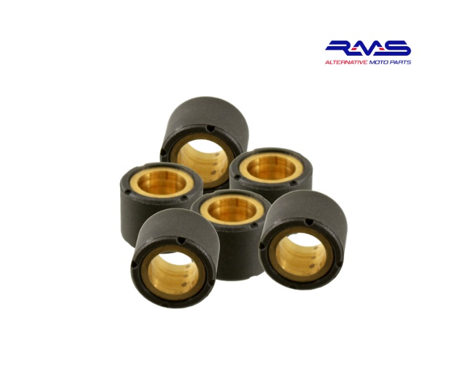 Rodillos 15x12mm RMS. Este juego de 6 rodillos del fabricante italiano RMS aporta resistencia y durabilidad, ya que presenta calidad original. Estos rodillos son montados en motos como Yamaha Jog R/RR, Aerox, Neos, Beta ARK, Aprilia Sonic, Jog antigua, entre otras. Elige los gramos que necesites en el desplegable.