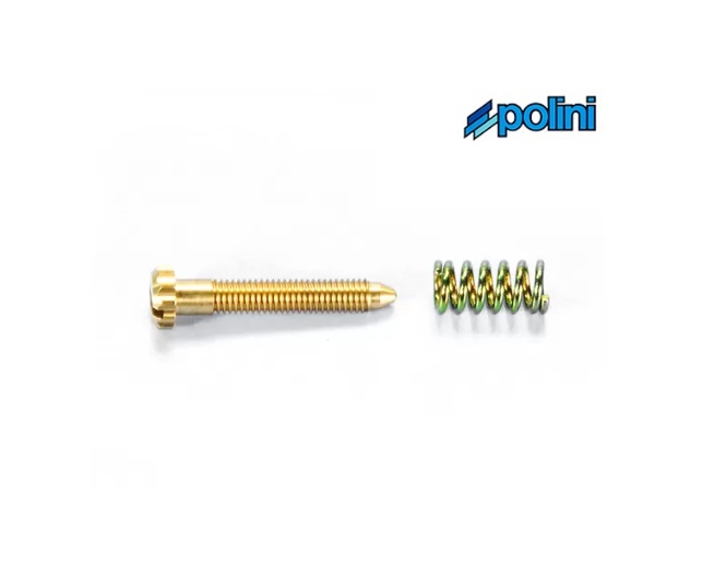 Tornillo regulador ralentín carburador Polini. Este kit para ajuste del ralentín incluye tornillo y muelle y es válido para carburadores PWK 24, 26, 28 y 30mm polini.