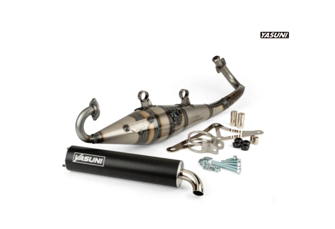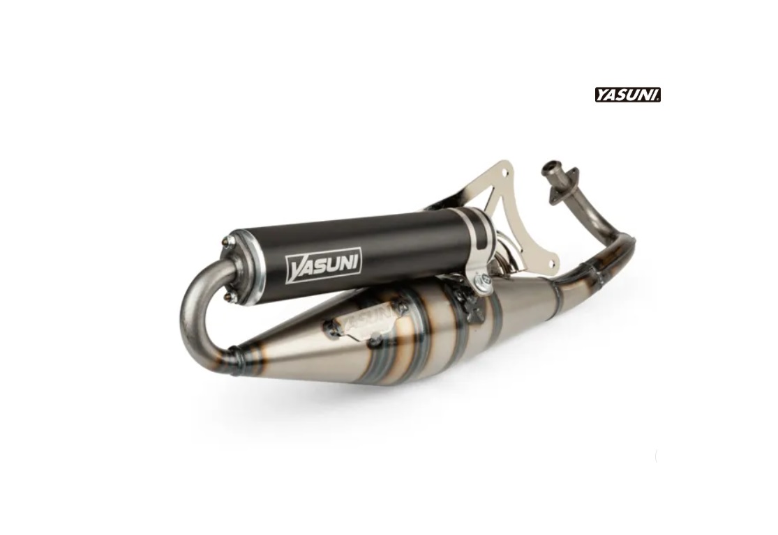 Tubo escape Yasuni Z Piaggio silencioso negro. Este tubo de escape del fabricante Yasuni es válido para motores Piaggio, montado en motos como Piaggio Zip SP, Zip Copa, Zip Base, NRG, Gilera, Typhoon, entre otras. Está homologado para ITV con certificado CE. Su silenciador de aluminio en color negro nos aporta un sonido excepcional y gran durabilidad.