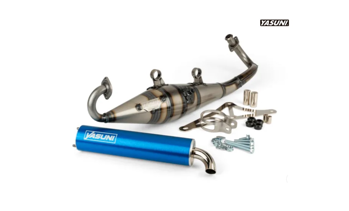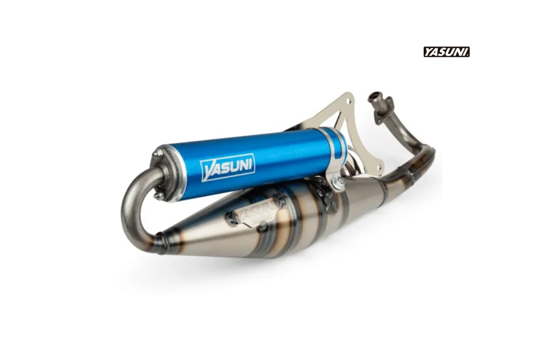 Tubo escape Yasuni Z Piaggio silencioso azul. Este tubo de escape del fabricante Yasuni es válido para motores Piaggio, montado en motos como Piaggio Zip SP, Zip Copa, Zip Base, NRG, Gilera, Typhoon, entre otras. Está homologado para ITV con certificado CE. Su silenciador de aluminio en color azul nos aporta un sonido excepcional y gran durabilidad.