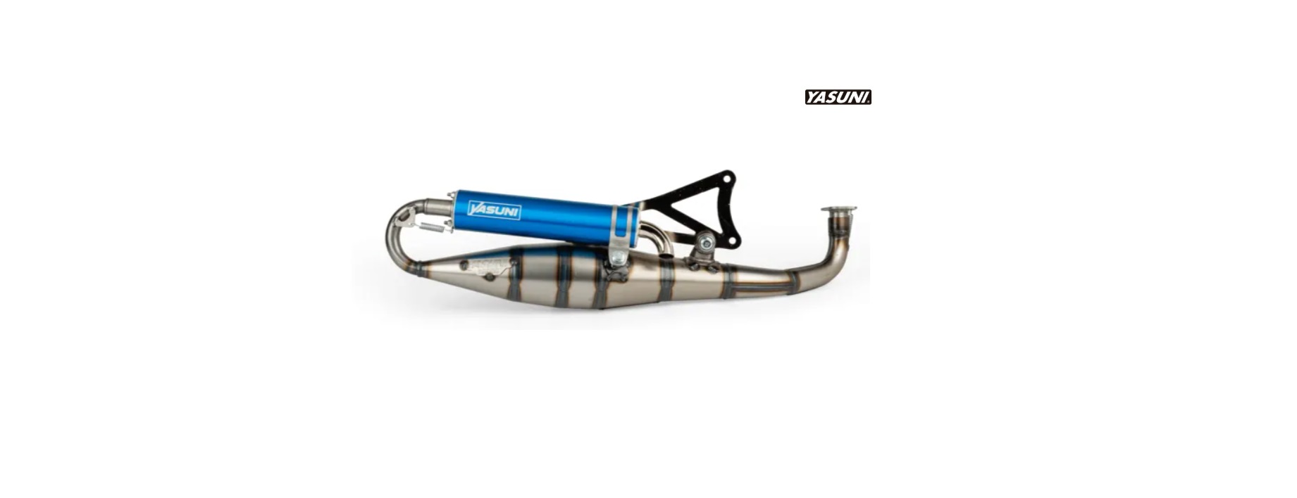 Yasuni Carrera 16 Minarelli Horizontal azul. Este tubo de escape es para competición, válido para motores Minarelli Horizontal, montado en motos como Yamaha Jog R/RR, Aerox, Neos, entre otras. Cuenta con todos los accesorios para su montaje. Color del silencioso azul.