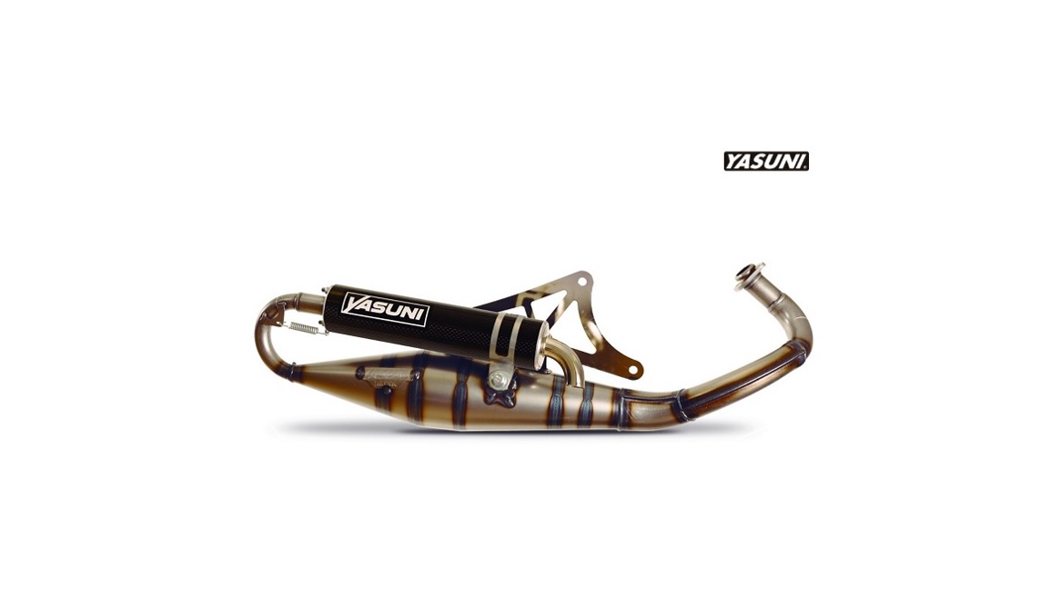 Yasuni R Piaggio silencioso carbono negro. Este tubo de escape Yasuni R es válido para todos los motores Piaggio, tanto refrigeración por aire, como por agua, por ejemplo, Piaggio Zip, Gilera, Typhon, entre otras. Es ideal para motores de 49cc y 70cc. Para un mejor funcionamiento, se recomienda montar con un carburador de 17,5. Este escape está homologado para ITV (contiene certificado de homologación). Con silencioso carbono negro.