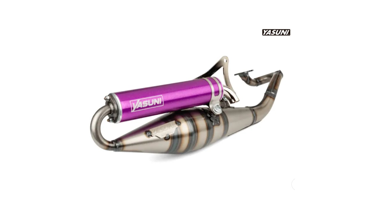 Yasuni Z Minarelli Horizontal Violeta. Este tubo de escape del fabricante Yasuni es válido para motores Minarelli Horizonta, montado en motos como Yamaha Jog R/RR, Aerox, Neo’s, Beta ARK, Aprilia Sonic, Jog antigua, entre otras. Este escape está homologado para ITV (contiene certificado de homologación). Color del colín violeta.